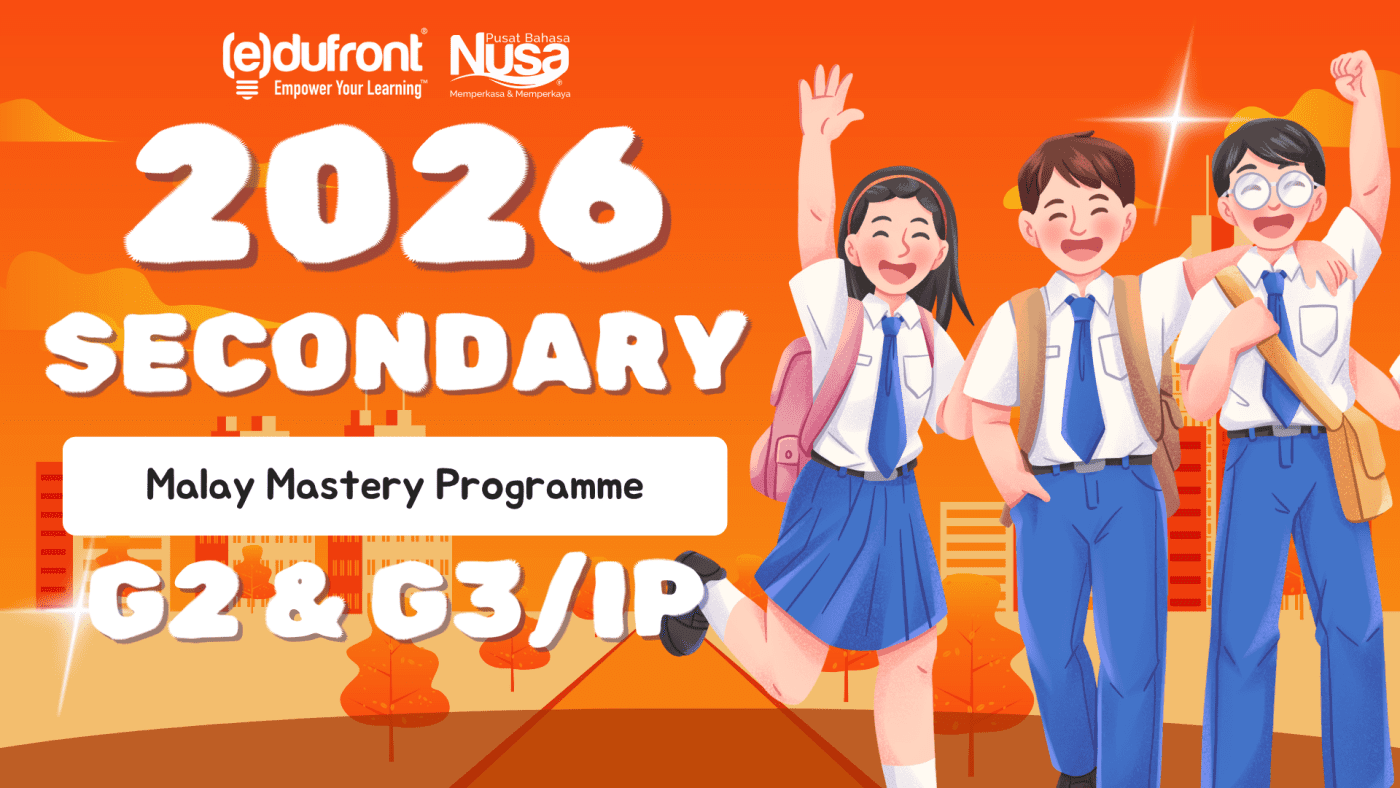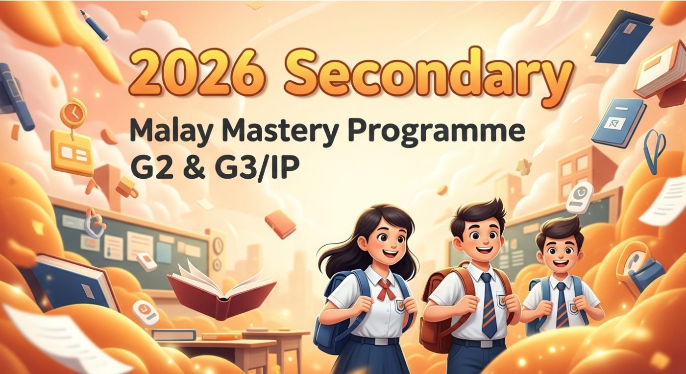 Pusat Bahasa Nusa’s Secondary Malay Mastery™️ Programme supports students across the G2, G3, and IP tracks. The G2 Programme helps students build confidence and proficiency in Malay to prepare for the Singapore-Cambridge Secondary Education Certificate (SEC) in Secondary 4, while the G3/IP Programme provides comprehensive preparation for the SEC Malay and Higher Malay examinations.
